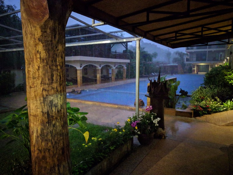 Had dinner in a cozy place while there is a big storm outside, with lightnings and the rain falling next to our side.