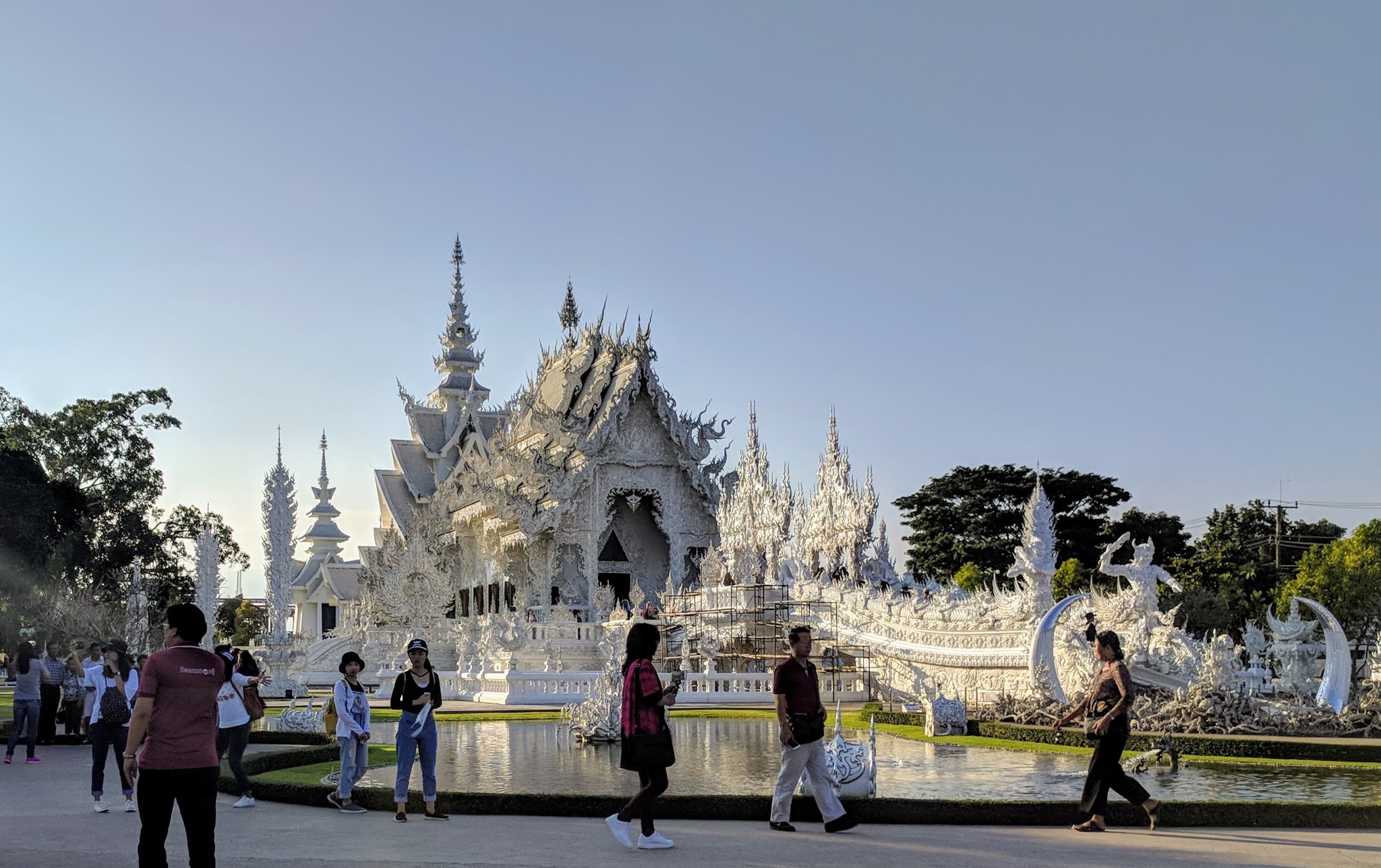 The weirdness of the White Temple, especially the big paint inside the main temple, with all the occidental pop references.